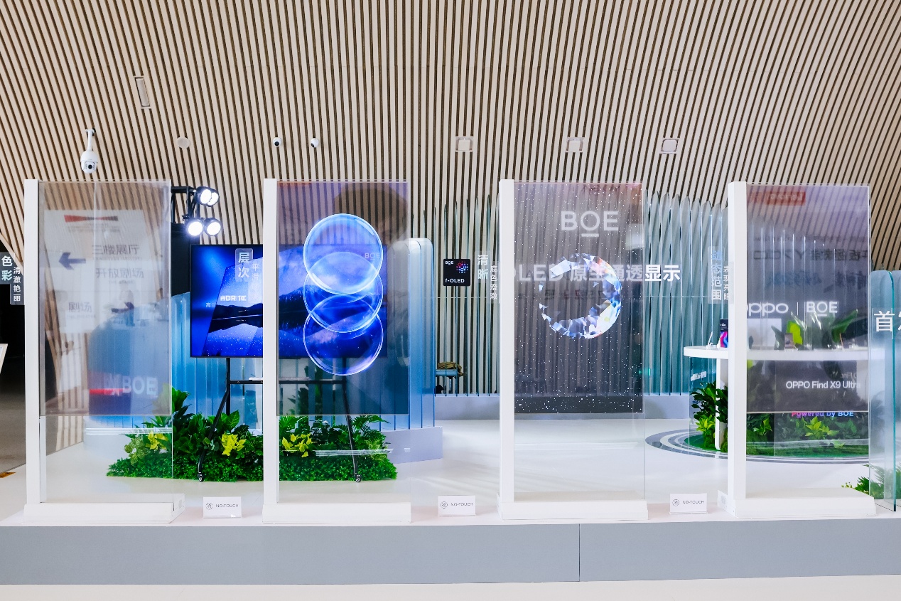 值得关注的是,BOE(京东方)联合OPPO 在一层大厅联合打造的“BOE 原生OLED通透显示”艺术特展,成为此次博览会的另一大核心看点。展区以“通透感”为主线,依次呈现四大模块: