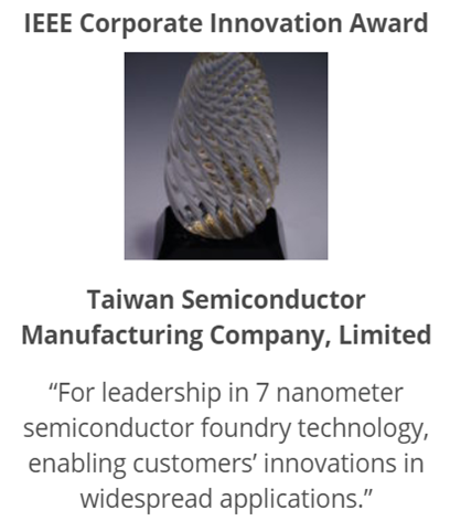 获奖理由为:对于7纳米半导体铸造技术的领导地位,使客户能够在广泛的应用中进行创新。(校对/若冰)