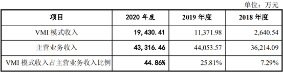 2018年、2019年和2020年,凯旺科技VMI模式收入占主营业务收入比例分别为7.29%、25.81%和44.86%。从当前的趋势来看,VMI模式收入正在逐年提升。