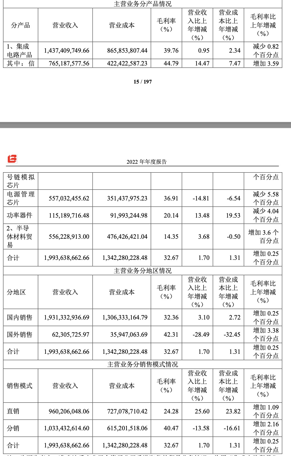 其中,集微网注意到几个数据的重要变化。首先是来自国外销售的营业收入骤降28.49%。其次各主要产品产销量方面,信号链模拟芯片产量同比降低27.91%,库存同比降低17.94%;电源管理芯片产量同比降低21.76%,库存同比降低16.20%;功率器件产量同比增加7.34%,库存同比增加129.44%。信号链及电源管理芯片产量降低以及最终库存的降低符合行业需求及整体“去库存”的状况,而需求相对旺盛的功率器件为何也出现库存大涨的情况?