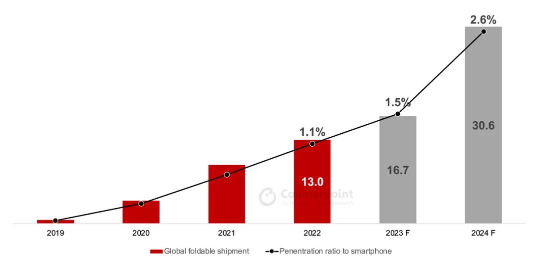 Counterpoint Research高级分析师Jene Park表示,频繁的产品发布(以及伴随产品发布的营销效应)正在改变中国消费者对折叠屏产品的看法。因此,中国消费者比全球任何其他市场的消费者都更容易及频繁地接触到款式丰富的折叠屏产品。