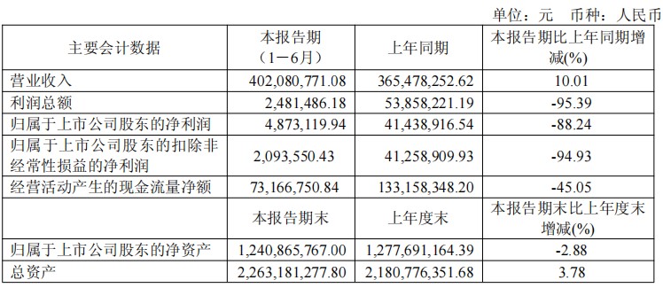 8月28日,统联精密发布2025年半年度业绩报告称,上半年,公司实现营业收入4.02亿元,同比增长10.01%;实现归属于上市公司股东的净利润487.31万元,同比下降88.24%;扣除非经常性损益的净利润为209.36万元,同比下降94.93%。