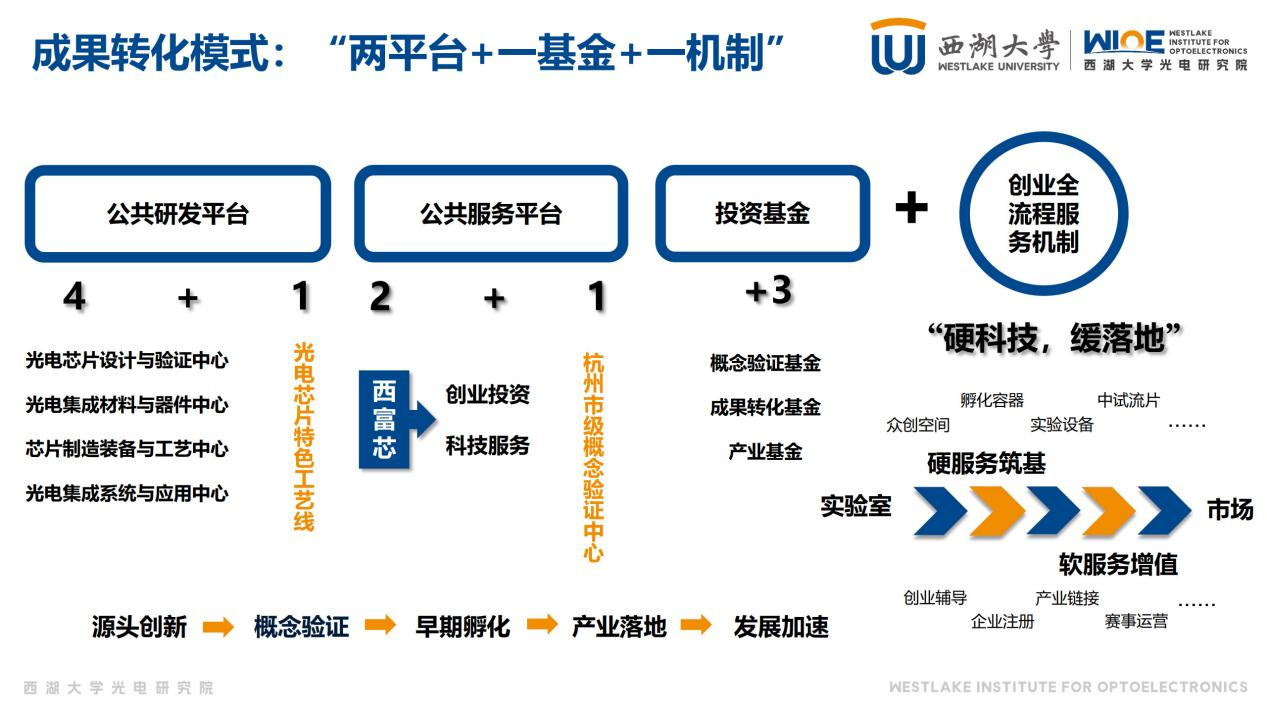 值得一提的是,西湖大学光电研究院形成的“两平台+一基金+一机制”科创服务体系,构建了“源头创新—概念验证—早期孵化—产业落地—发展加速”的服务生态,在优质成果走向市场的过程中发挥了重要作用