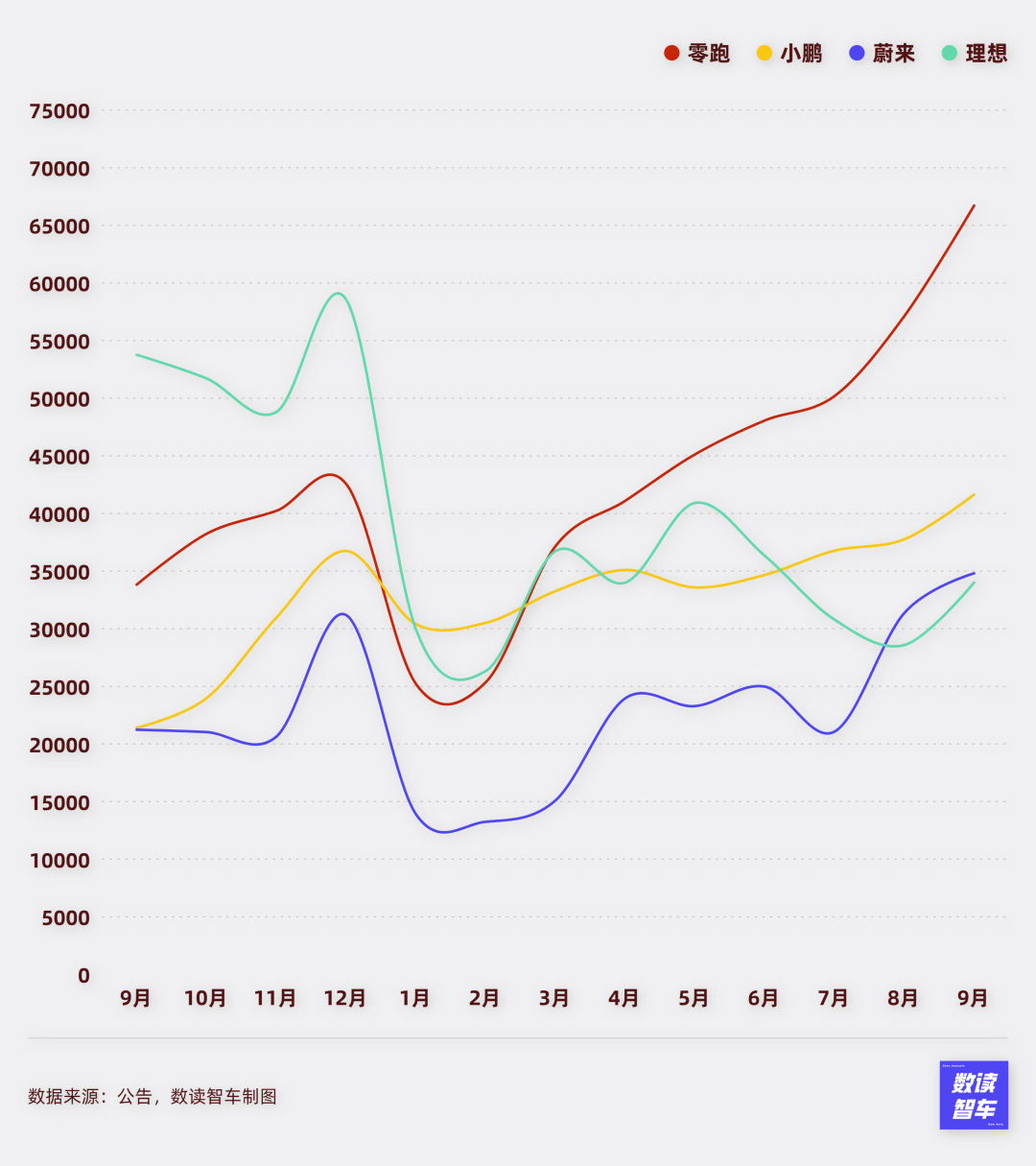理想已经跌到四家车企的吊车尾,零跑反而一骑绝尘冲到理想都未曾达到的销量高度。前9个月,零跑、小鹏的整体销量已经超过理想。往纯电转型,理想的路走得远比想象的艰难。