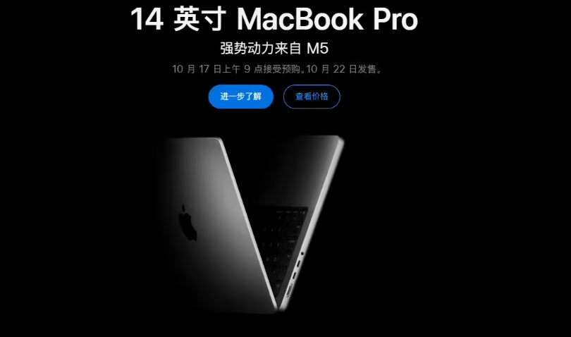 全新14英寸MacBook Pro、iPad Pro发布,两款新品均首发搭载M5芯片,售价分别为12999元起/8999元起,将在10月17日上午9点接受预购,并在10月22日发售。