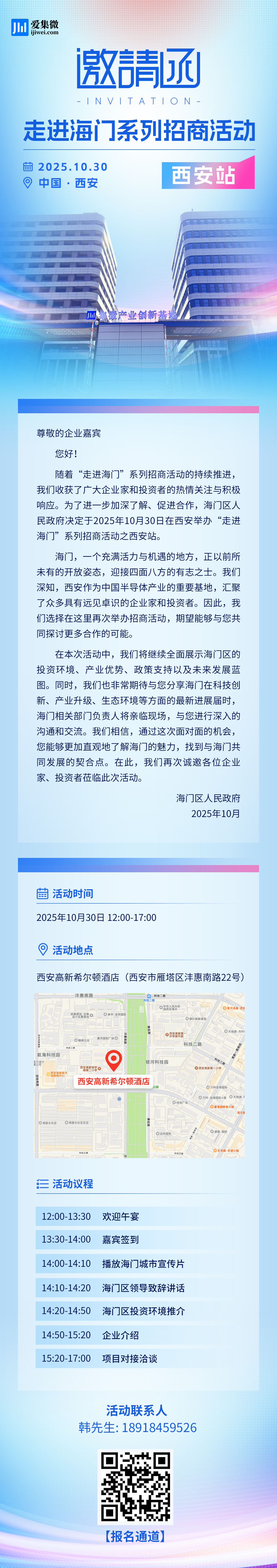 邀请函|10月30日,诚邀参加“走进海门”系列招商活动之西安站