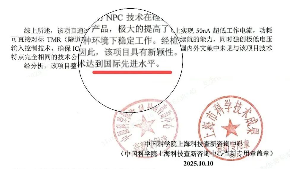 多家一线客户纷纷咨询引进,一场“低功耗换代潮”正在全面引爆。更重磅的是,这款产品已正式通过“中国科学院上海科技查新咨询中心”认证,凭借50nA超低工作电流与1.08V极低电压输入两大核心技术,刷新了行业标准,达到国际先进水平。