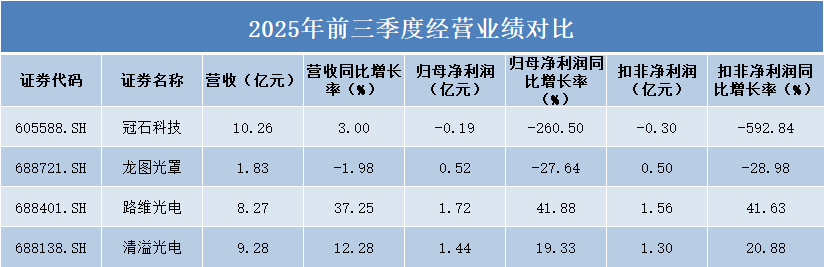 从2025 年前三季度整体业绩来看,路维光电以营收8.27亿元、同比增长37.25%,归母净利润1.72亿元、同比增长41.88%的表现,在营收和利润增速上双双领跑行业。