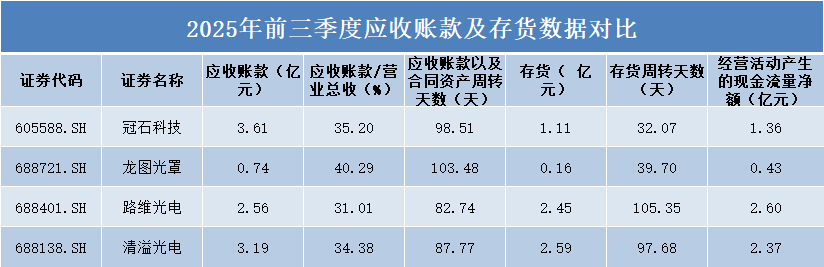 存货管理方面出现有趣反差:冠石科技和龙图光罩表现突出,存货周转天数分别为32.07天和39.70天,显示出较高的存货周转效率。其中冠石科技存货规模1.11亿元,龙图光罩存货仅0.16亿元,规模相对较小。