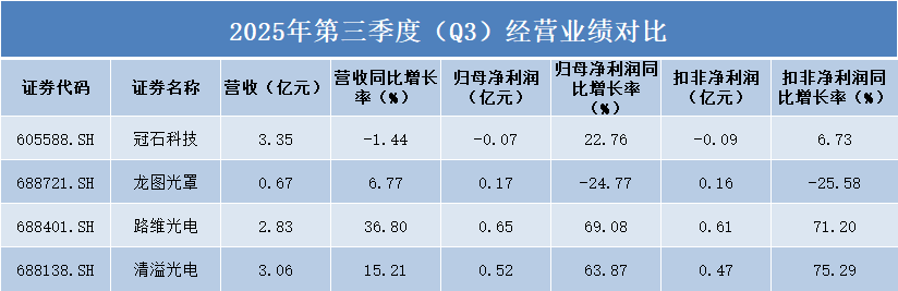值得注意的是,清溢光电扣非净利润同比增长75.29%,增幅超过归母净利润,显示其主营业务盈利能力持续增强。路维光电扣非净利润增长71.20%,同样保持高质量增长态势。