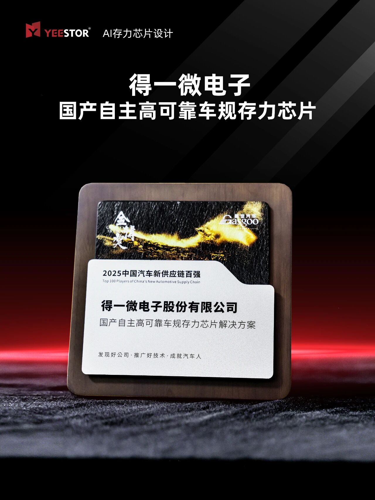 10月30日,2025第七届“金辑奖”颁奖盛典在上海盛大举行。得一微电子(YEESTOR)凭借在车规存力芯片领域的自主创新和规模化上车成果,成功入选“中国汽车新供应链百强”,彰显了国产自主高可靠存力芯片在支撑汽车智能化进程中的核心价值。