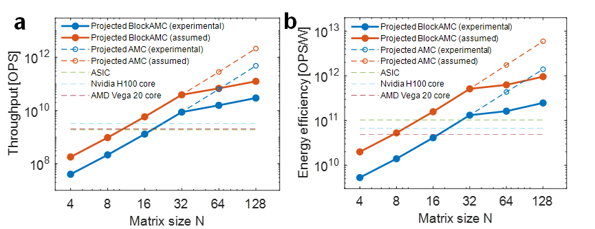 综合基准测试结果证实,在保持相当计算精度的前提下,本模拟计算方法可实现领先的处理速度和能效(图5)。这些成果不仅验证了全模拟矩阵求解路径的可行性,也为应对未来智能计算与通信系统中的算力瓶颈提供了具有前景的技术平台。