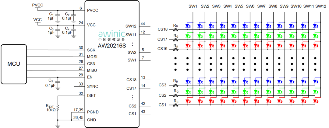 通信接口:1MHz I²C(AW20216)/ 10MHz SPI(AW20216S)