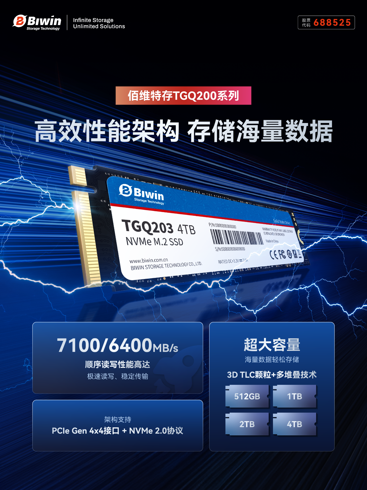 为了保障和提升存储设备在高可靠性应用场景中的性能稳定性与工业级耐久特性,近日,佰维特存重磅推出TGQ200系列,搭载 PCIe Gen4x4接口+ NVMe2.0协议的高性能架构,容量覆盖 512GB-4TB。产品融合 -40℃~85℃ 宽温适应、过压过流防护、数据保护与 S.M.A.R.T 智能监测等多重可靠性设计,满足工业自动化、边缘服务器、边缘AI计算盒子、数据采集设备、通信设备、工业计算机等关键工业设备对数据加速与安全存储的需求。