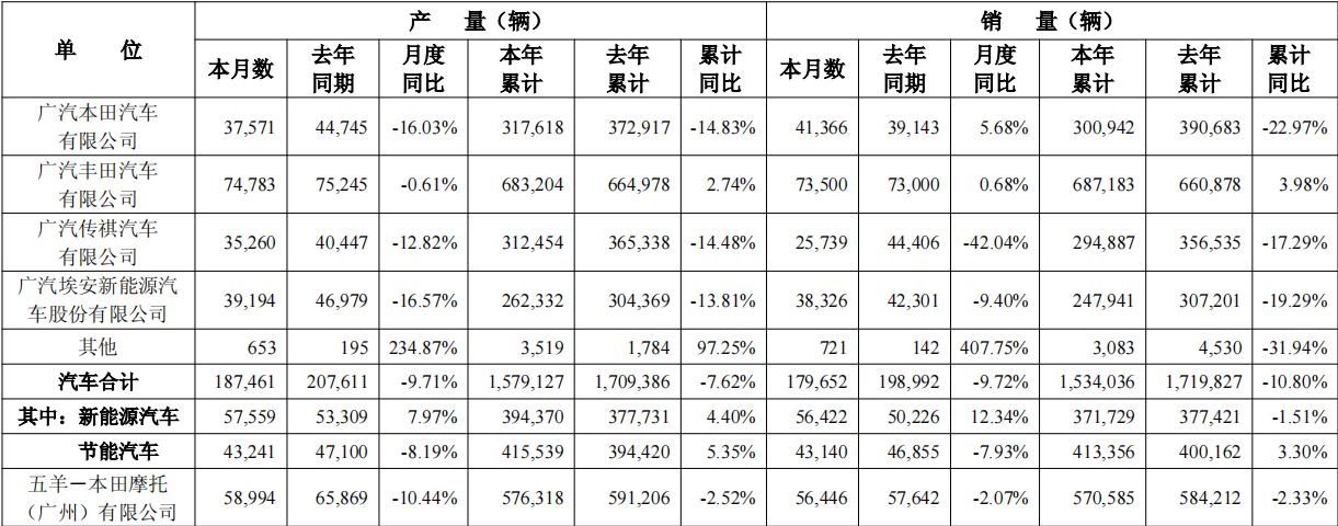 广汽集团11月销售汽车17.97万辆,同比下降9.72%