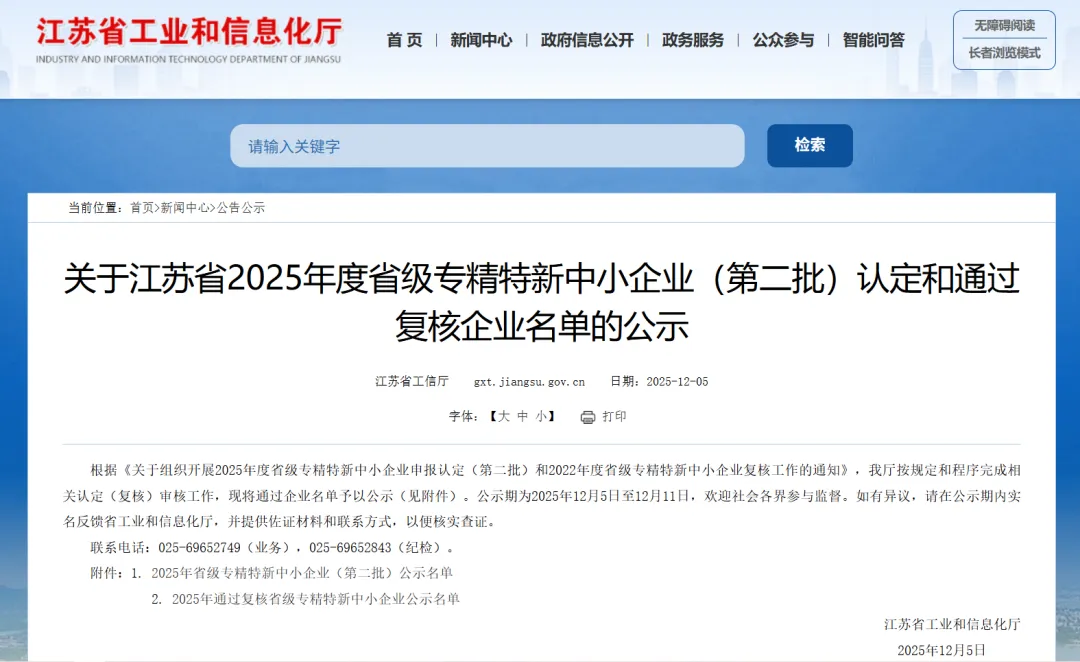 2025年省级专精特新中小企业(第二批)公示名单