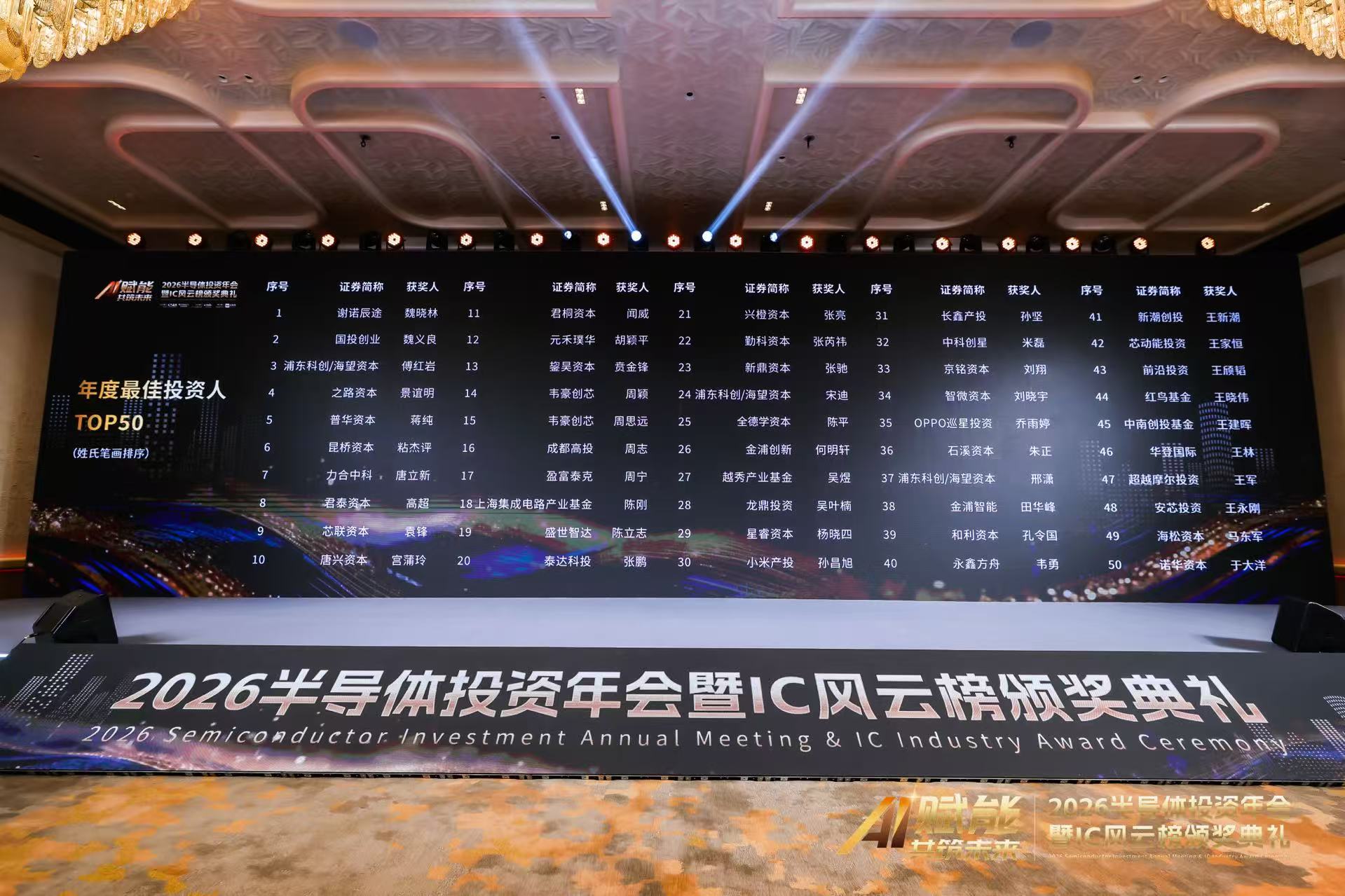 2025年12月20日,由半导体投资联盟和集成电路投资创新联盟主办、ICT知识产权发展联盟协办、爱集微承办的“2026半导体投资年会暨IC风云榜颁奖典礼”在上海前滩华尔道夫酒店圆满举行。本届年会以“AI赋能・共筑未来——技术创新与产业融合之路”为主题,聚焦人工智能与大模型在半导体产业中的深度融合与落地实践。