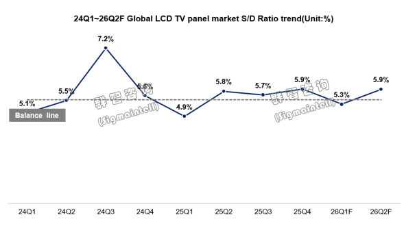 群智咨询测算显示,这种策略性控产将推动2026年一季度全球LCD TV面板市场供需比降至5.3%,形成略偏紧的供需格局,为价格上行提供空间。