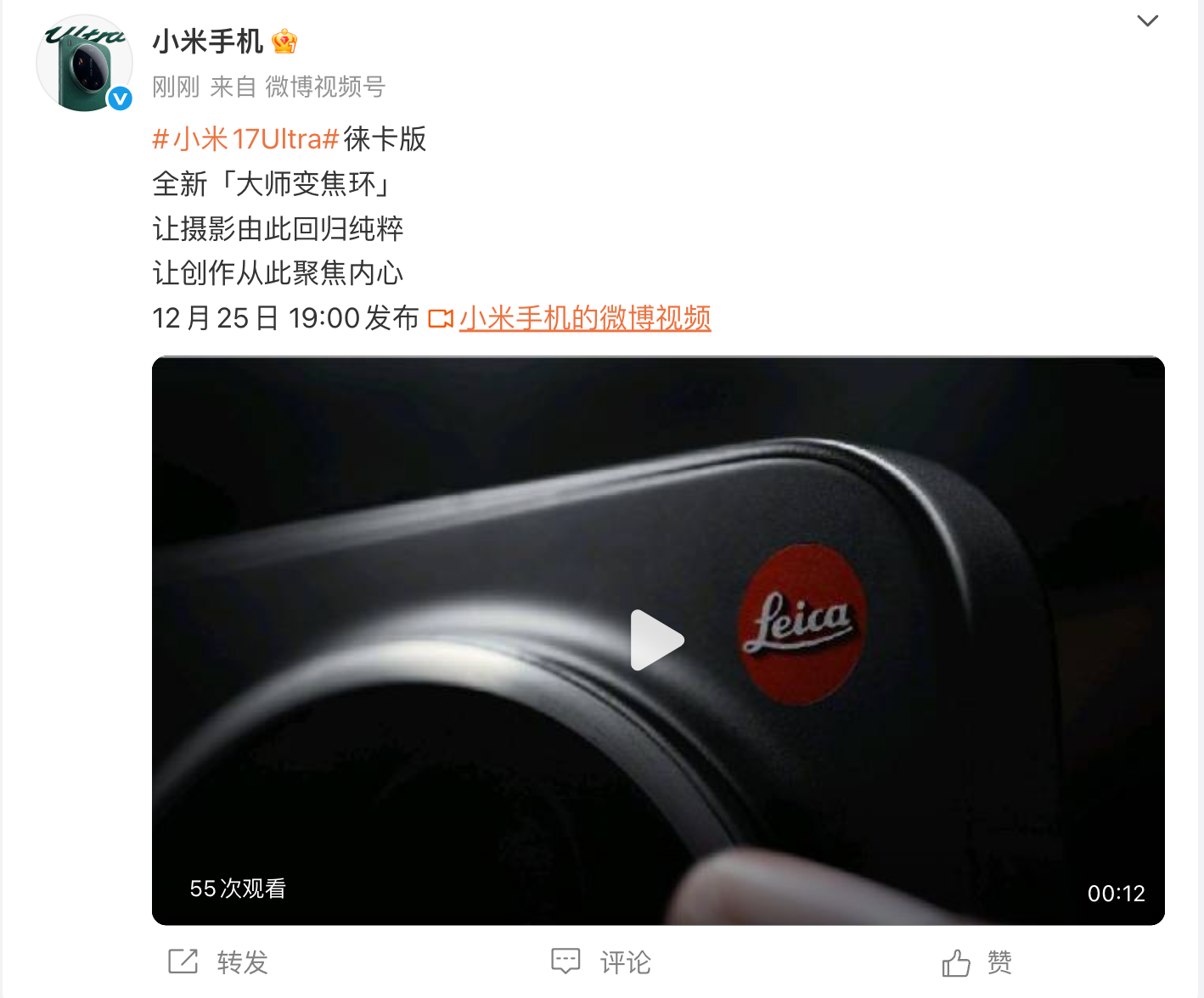 小米创始人雷军于12月23日通过微博宣布,即将推出的小米17 Ultra将首发搭载“徕卡2亿像素光学变焦”镜头。他称此为“小米徕卡光学极致小型化的又一力作”,并指出其技术原理与相机变焦镜头一脉相承。