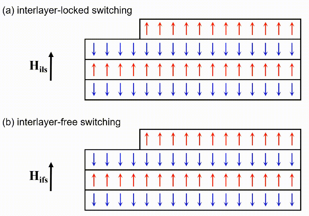 最理想的状态,是所有磁性层同时发生“整体翻转”,即舞者的步调完全一致,同一时间内上下层全体同步“转身”,在保持反铁磁态的基础上实现方向的切换,即“层间锁定型”。寻找满足这一要求的反铁磁材料,对于构建基于反铁磁的新型存储器件至关重要。