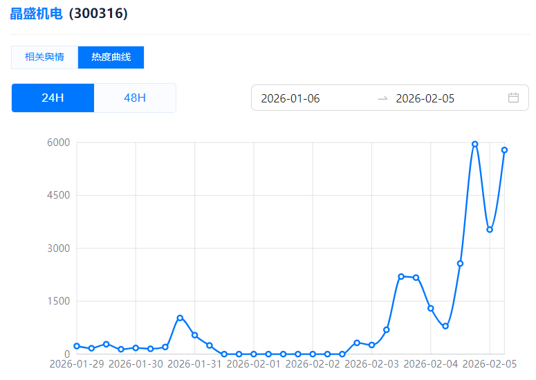 晶盛机电:2月4日,业内传闻马斯克调研了多家中国光伏企业,其中包括晶盛机电。马斯克团队秘密调研中国企业,拉爆太空光伏概念股。因市场传闻与“太空光伏”概念关联,晶盛机电2月4日公告称,近期资本市场对“太空光伏”等概念板块的关注度持续攀升,相关板块呈现出较高的市场热度。目前,“太空光伏”应用场景尚处于探索阶段,产业化进程仍面临不确定性。2月5日,其股价跌9.85%,成交额高达52.35亿元,传闻与股价的巨幅波动共同将其推至舆论中心。