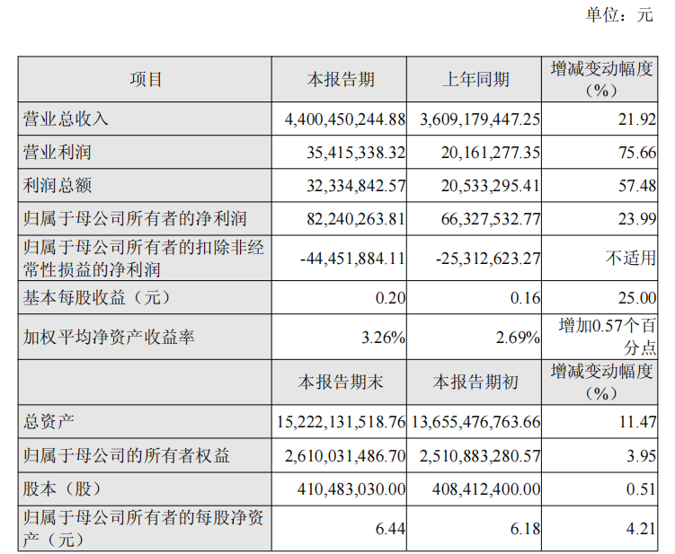 2月24日,甬矽电子发布2025年度业绩快报,全年营业总收入44亿元,同比增长21.92%;归属于母公司所有者的净利润8224.03万元,同比增长23.99%,基本每股收益0.2元,同比提升25%,期末公司总资产达152.22亿元,较期初增长11.47%。