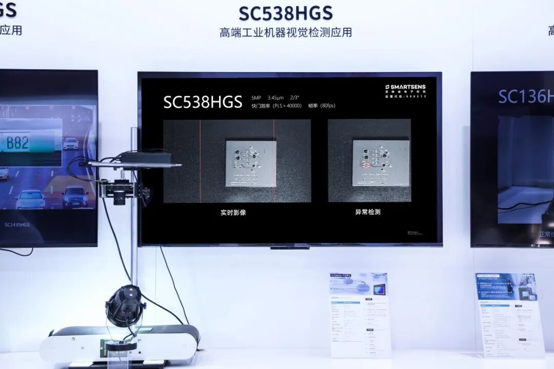 针对工业场景,思特威还展出了搭载 Lightbox IR® 近红外增强技术的5MP高帧率全局快门 CMOS 图像传感器 SC538HGS SC538HGS 集高感度、高分辨率、高信噪比、低功耗四大优势于一体,实现了可见光与近红外光下的超高感度成像,能够有效提升暗光、弱光等复杂光线条件下的成像效果,为室内运动捕捉、新能源材料检测等工业检测场景提供可靠的视觉解决方案。